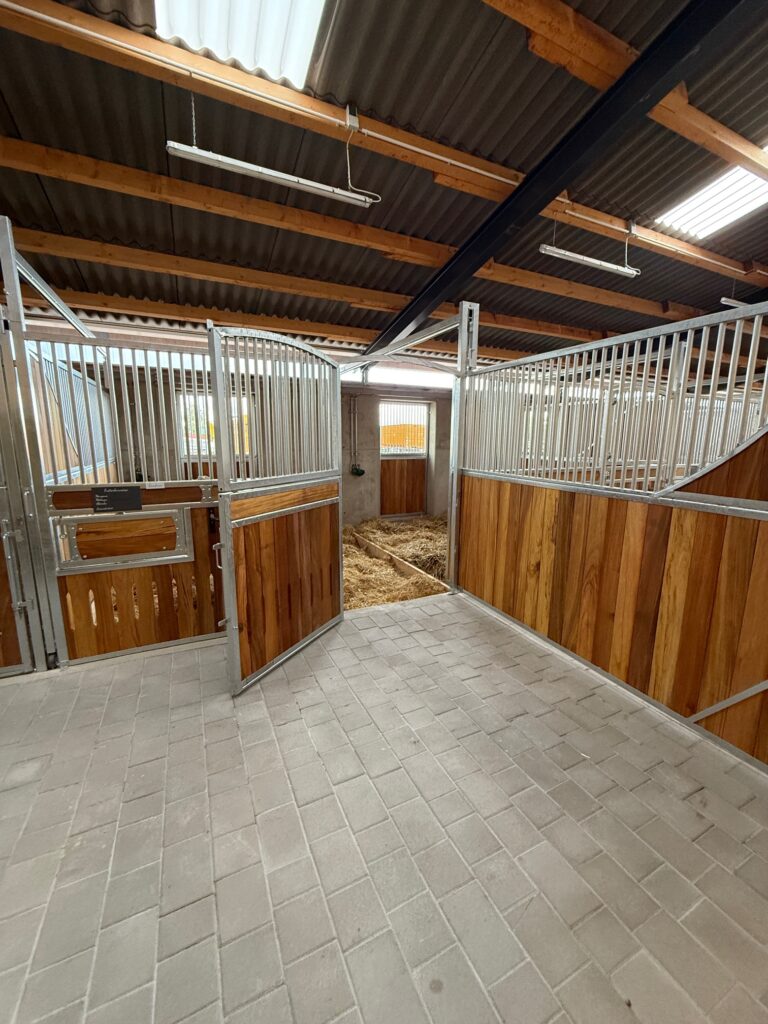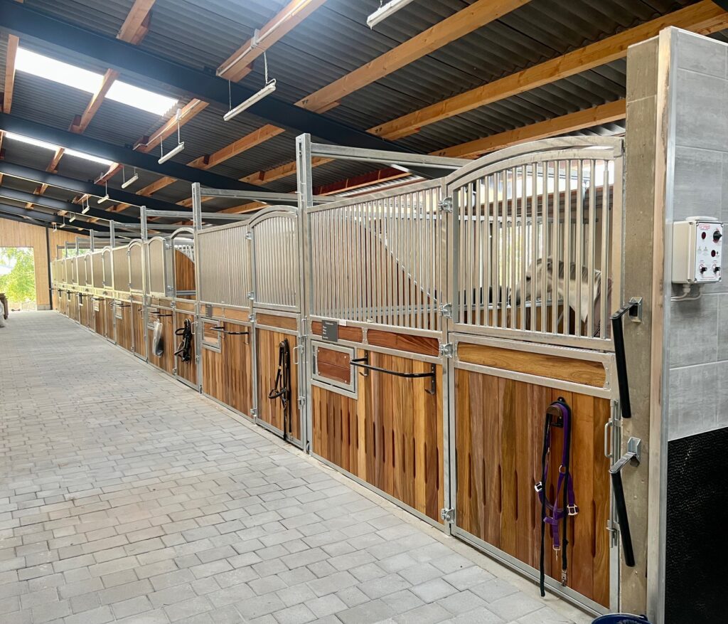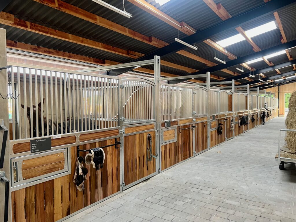 Durch die Verbindung von klassischem Design mit modernen, praktischen Lösungen bietet diese Stallanlage höchsten Komfort für Pferd und Reiter.